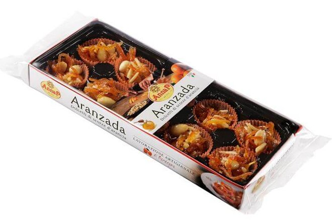 Aranzada von Lanaittu ist eine traditionelle sardische Spezialität aus kandierten Orangenschalen, Honig und Mandeln.