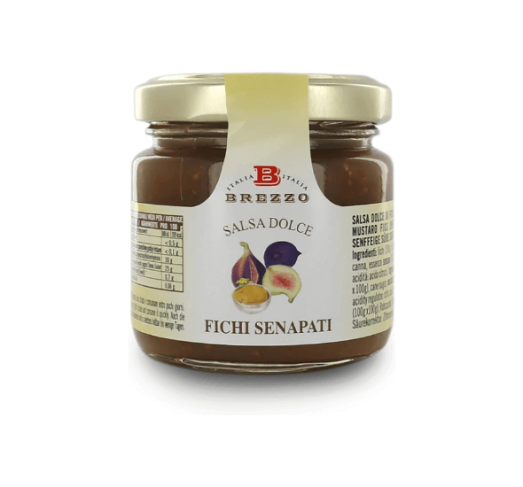 Salsa Dolce Fichi Senapata von Brezzo – fruchtige Feigensauce mit feiner Senfnote, ideal zu Käse, Fleisch und Antipasti.