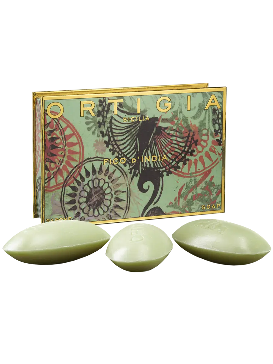Die Fico d’India Seife von Ortigia entführt in die leuchtende Landschaft Siziliens. Inspiriert von der wilden Schönheit der Kaktusfeige vereint der Duft Frische mit einer sanft grünen, leicht pudrigen Note – lebendig und zugleich elegant. Die pflanzliche Seifenbasis sorgt für eine besonders milde Reinigung und einen cremigen Schaum, der die Haut geschmeidig pflegt und zart parfümiert. Das kunstvolle, farbenprächtige Design der Verpackung macht die Seife zu einem kleinen Schmuckstück – ideal auch als stilvolles Geschenk. Ein Stück mediterrane Lebensfreude für jeden Tag. Die Marke Ortigia bekommt ihren Namen von der kleinen Insel Ortigia an der Ostküste Siziliens. Ortigia ist das historische Zentrum der Stadt Syrakus. In dieser schönen sizilianischen Stadt soll die Göttin Artemis geboren sein.