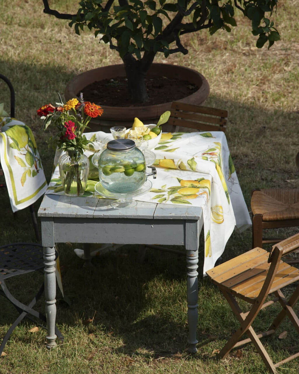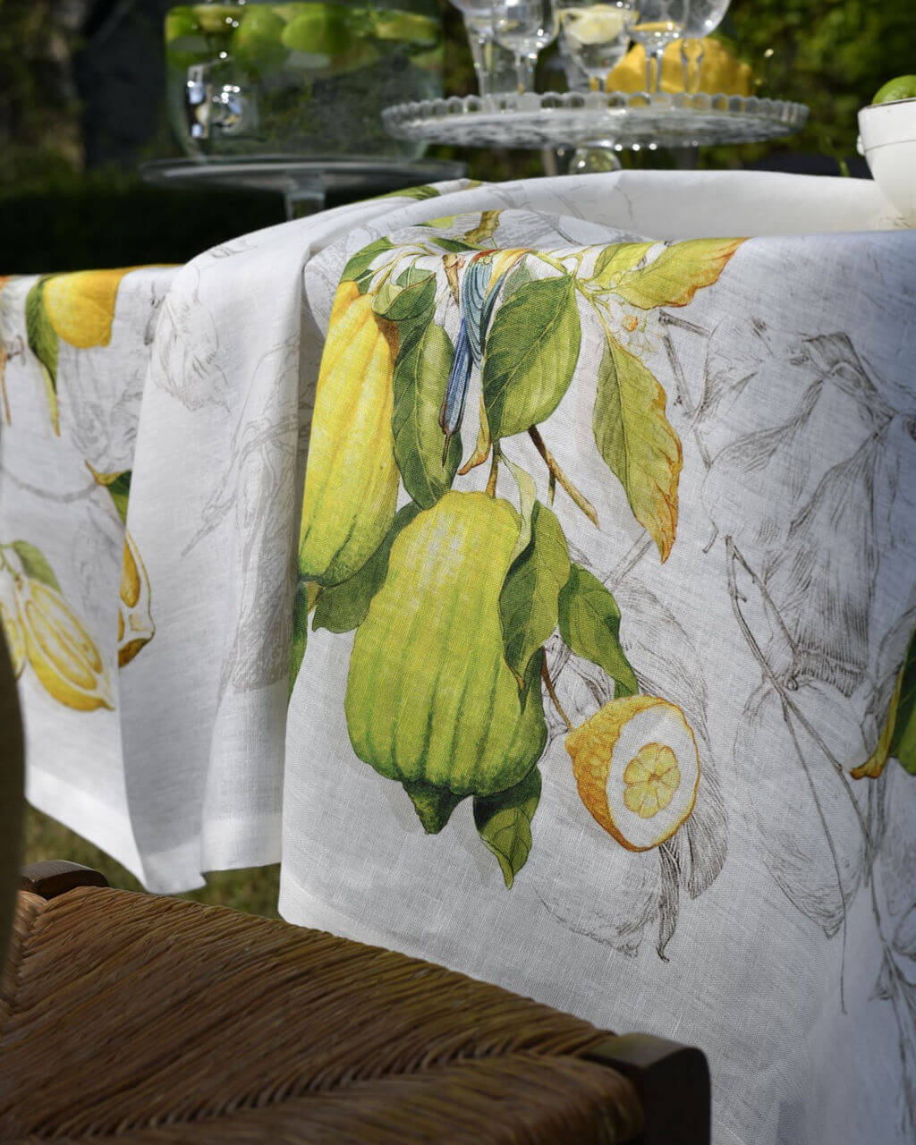 Sommergefühle pur – dieses wunderschöne Leinentischtuch “Limoncello ” mit den Massen 170 cm im Durchmesser ( rund ) verschönert jedes Ambiente. Fast kann man die Zitronen riechen….