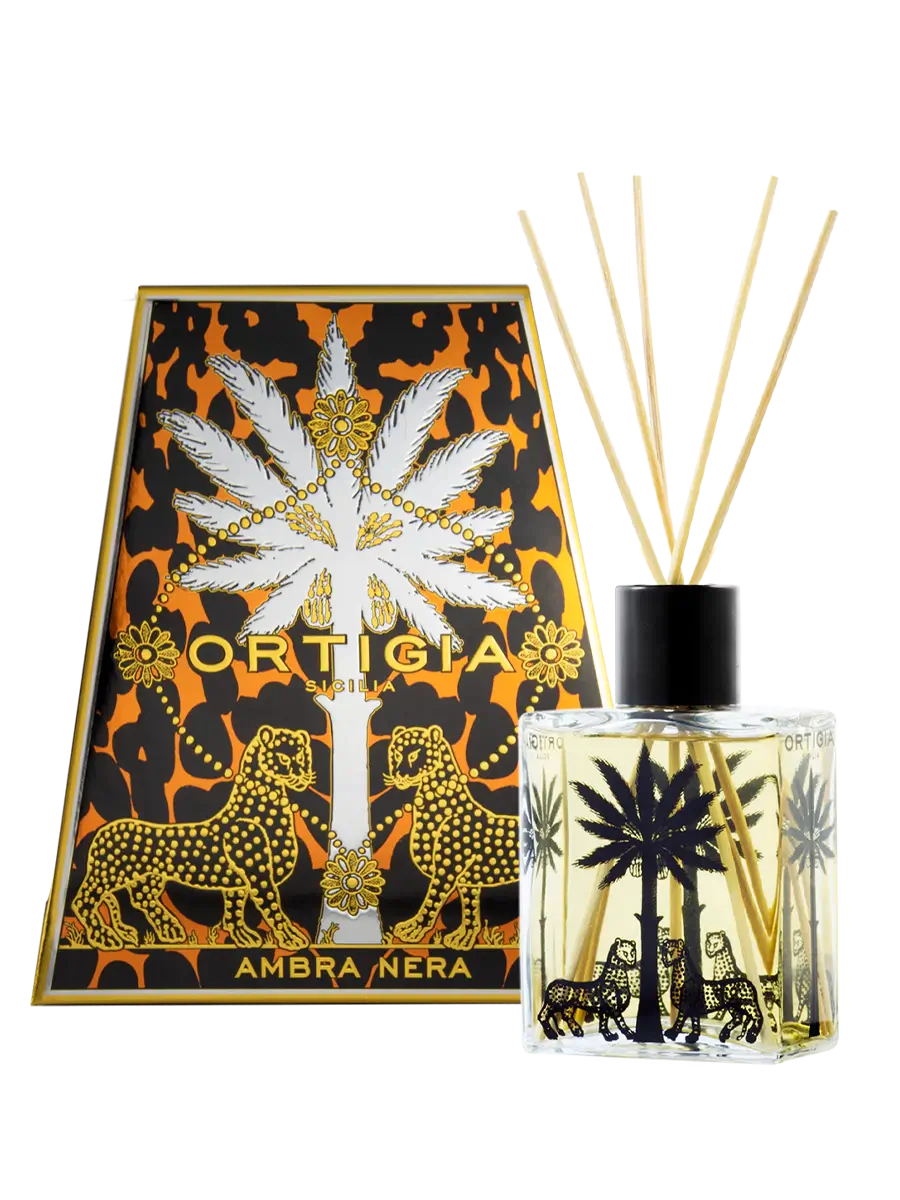 Warm. Tief. Geheimnisvoll. Ambra Nera ist ein sinnlicher Raumduft mit Noten von Amber, Harzen und einem Hauch von Gewürz. Er erinnert an warme Abende, dunkles Holz und leises Kerzenlicht. Der Duft entfaltet sich langsam und gleichmäßig – präsent, ohne laut zu sein.Für Räume mit Charakter.Und für Momente, die bleiben. Der Diffuser ist 26 cm hoch, die Naturstäbchen saugen den Raumduft auf und geben ihn dann langsam an die Umgebung ab.