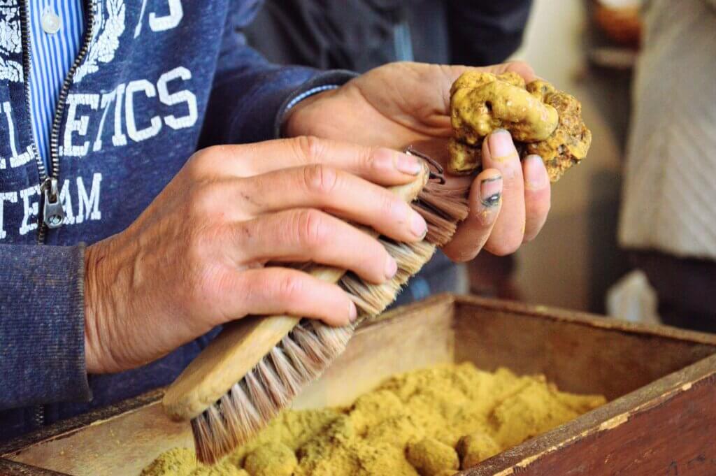 Trüffel – eine ganz besondere Knolle Okt. 19, 2021 | in Blog Die Trüffelsaison ist da und bei Trüffelfans in aller Welt steigt die Vorfreude auf die ersten Knollen. Auch im NON SOLO VINO wird es demnächst wieder frische Trüffel zu kaufen geben und daher widmen wir uns dieser ganz besonderen Knolle.Der “Tartufo”, wie er in Italien heißt, ist ausgesprochen selten und nur in einer kurzen Zeitspanne erhältlich, nämlich etwa von Oktober bis Ende Dezember. Unter anderem auch aufgrund seiner Seltenheit ist er der Inbegriff von Luxus in der Küche. Weißer Trüffel kostet bis zu 9.000 Euro pro Kilo und ist somit der mit Abstand teuerste Speisepilz. Wobei der Preis stark variiert, da er von vielen unterschiedlichen Faktoren abhängt. Je nach Witterung und Klima gibt es „bessere“ und „schlechtere“ Trüffeljahre. Auch Größe und Form der Trüffel haben Einfluss auf den Preis. Eine „normale Portion“ Trüffel für zwei Personen (circa 20 bis 25 Gramm) kostet in etwa 40 bis 60 Euro.Sein Aroma verfeinert die einfachsten Gerichte und gilt vermutlich schon seit der Frühzeit der Menschheit als Delikatesse. In der Antike war er als Aphrodisiakum bekannt und bei Griechen und Römern sehr beliebt. Im Mittelalter wurde er ob ebendieser ihm nachgesagten Eigenschaft als Inbegriff von Sünde verteufelt. Ab der Renaissance stieg dann die Beliebtheit des Trüffels wieder an – und eine Erfolgsgeschichte nahm ihren Lauf. Tartufo e la cucina italianaTrüffel ist zwar kein nur für Italien typisches Produkt, wird aber gerne in der Cucina Italiana verwendet. Die feine Knolle kommt der italienischen Küche entgegen: Schließlich basieren hier viele Gerichte auf einfachen Rezepten mit wenigen, aber dafür hochwertigen Zutaten. Gourmets aus aller Welt verbinden den weißen Trüffel, also den ganz besonders seltenen, mit der Stadt Alba in der Region Piemont. Aber auch in den Marken, der Toskana, in Umbrien, den Abruzzen und bis nach Rom gibt es gute Trüffelgegenden. Typisch italienische Gerichte “al tartufo” sind etwa Tagliatelle mit Trüffelsauce, Trüffelrisotto, Trüffelomelett oder Bruschette mit Trüffel. Das Trüffelschwein – ein aussterbender “Beruf”Früher war die Suche mit Trüffelschweinen üblich. Dies geschieht heute nur noch für Touristen, da Schweine beim Ausgraben im Allgemeinen großen Schaden an den Wurzelspitzen anrichten. Deshalb sind sie in Italien auch seit 1982 verboten. Ein weiterer Nachteil an der Arbeit mit Trüffelschweinen: Diese Tiere sind auch Gourmets und würden die gefundenen Trüffel gerne alle gleich fressen. Die heute am weitesten verbreitete Art, Trüffel zu suchen, ist jene mit speziell abgerichteten Trüffelhunden. Ausgewählte Welpen werden schon früh an Milch, in der Trüffelschalen ausgekocht wurden, gewöhnt. Später erhalten sie dann ein besonderes Training – etwa an der “Universität für Trüffelhunde” in Roddi im Piemont. Hunde sind leichter zu führen als Schweine, graben anders als Schweine keine halbreifen Trüffeln aus und ihnen können die Trüffeln einfacher weggenommen werden. Auf Sardinien kommen außerdem auch Ziegen zum Einsatz bei der Trüffelsuche. Die wichtigsten der insgesamt mehr als 30 Trüffelsorten sind der Perigord-Trüffel und der weiße Trüffel, auch Alba-Trüffel genannt.Lesen Sie hier mehr über die beiden beliebtesten und wertvollsten Trüffelsorten:Der weiße Trüffel – “Tuber Magnatum Pico”Der “tuber magnatum” ist golden-hellbraun bis weiß, zwischen fünf Gramm und einem halben Kilo schwer und hat einen extrem intensiven Duft. Knollen von guter Qualität erkennt man daran, dass sie rundum fest sind und keine weichen Stellen aufweisen. Weißer Trüffel ist nicht lagerbar, sondern ehestmöglich zu verbrauchen! Um Geruch und Geschmack zu erhalten, sollte er einem Gericht erst am Ende der Zubereitung hinzugefügt werden. Am besten mit einem Trüffelhobel einfach wenige Scheiben über zum Beispiel Pasta, Eierspeise, Risotto oder Polenta hobeln und fertig ist Ihr Gourmet-Gericht. Schwarzer Perigord-Trüffel – “Tuber Melanosporum”Im optimalen Reifezustand ist das Fruchtfleisch dieser Sorte schwarz-violett, durchzogen von feinen weißen Adern. Je dunkler und intensiver die Farbe, desto höher die Qualität. Die auch als “Perigord-Trüffel” bekannten Knollen kommen auch in Spanien, in fast allen Trüffelgegenden Italiens und im ehemaligen Jugoslawien vor. Unter allen verschiedenen Sorten schwarzen Trüffels ist der Tuber Melanosporum der qualitativ hochwertigste. Er duftet nach Wald und Erde, leicht süßlich und ein wenig nach Moschus. Im Gegensatz zum weißen Trüffel wird der schwarze bei vielen Gerichten mitgekocht. Es gibt auch noch zahlreiche andere Trüffelsorten, es gilt also, beim Einkauf aufzupassen. So wird etwa häufig der Tuber Albidum, der kräftig nach Knoblauch riecht, als weißer Trüffel verkauft und auch für die industrielle Trüffelcremeproduktion verwendet. Dasselbe gilt für den Tuber Terfezia (Wüsten- oder Kalahari-Trüffel) und asiatische Trüffelvarianten, die oft wegen der geringeren Kosten als echte Trüffel verkauft oder darunter gemischt werden.